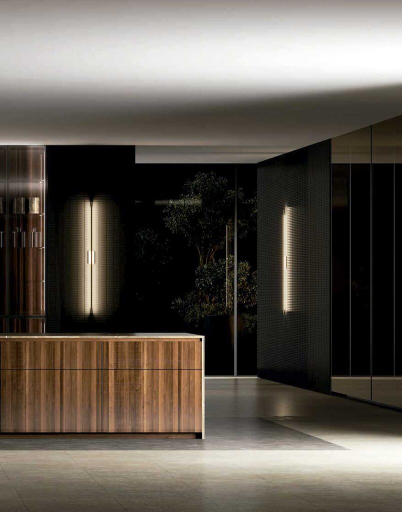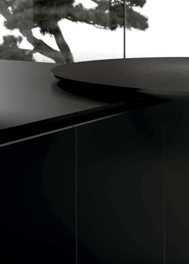 El minimalismo llevado a su máxima expresión. La ausencia de tiradores y las superficies continuas crean una sensación de orden absoluto, ideal para quienes buscan un ambiente sereno y moderno.