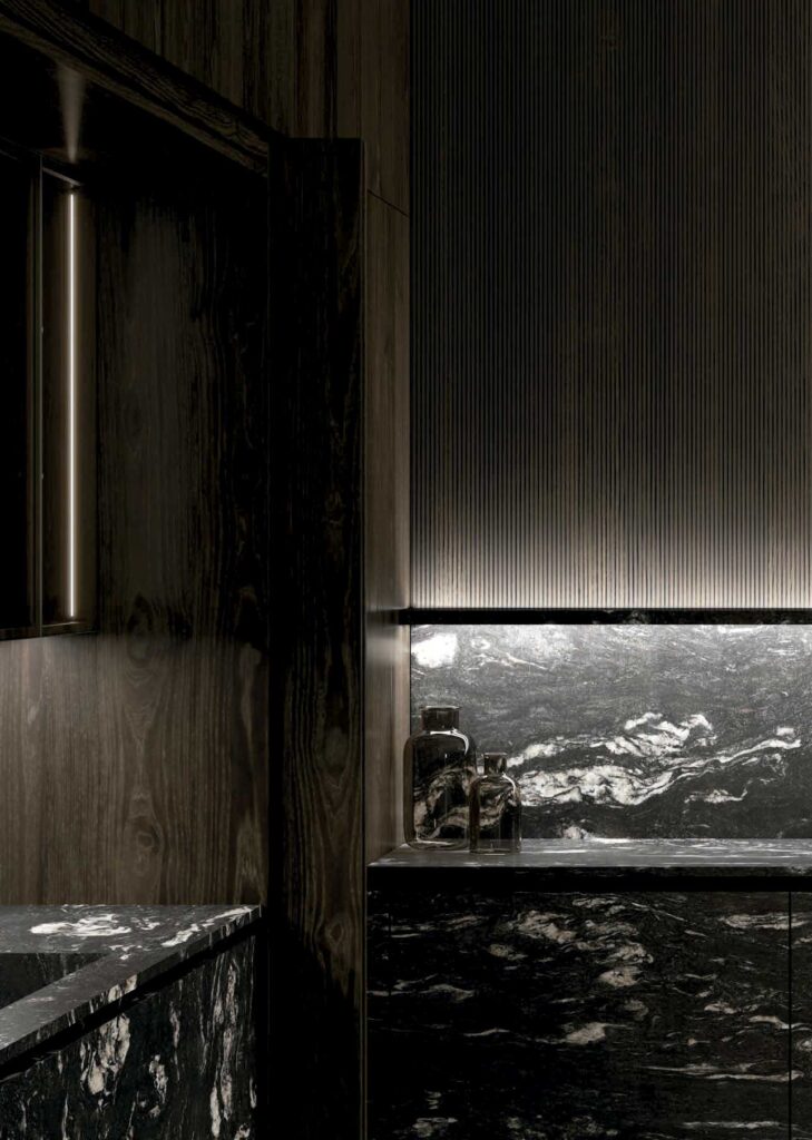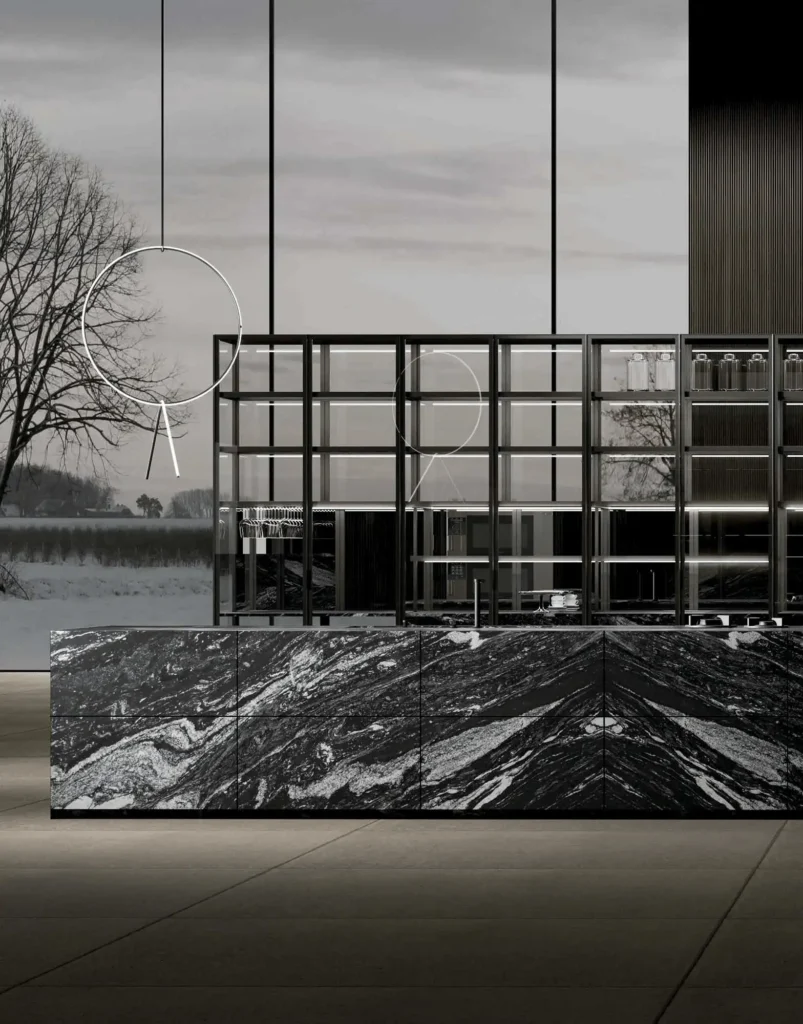 La piedra natural cobra protagonismo en esta versión de Fenice, aportando robustez y sofisticación. un diseño que emana lujo y solidez.